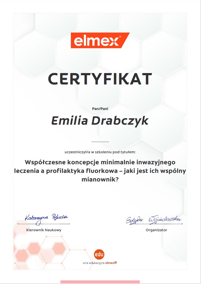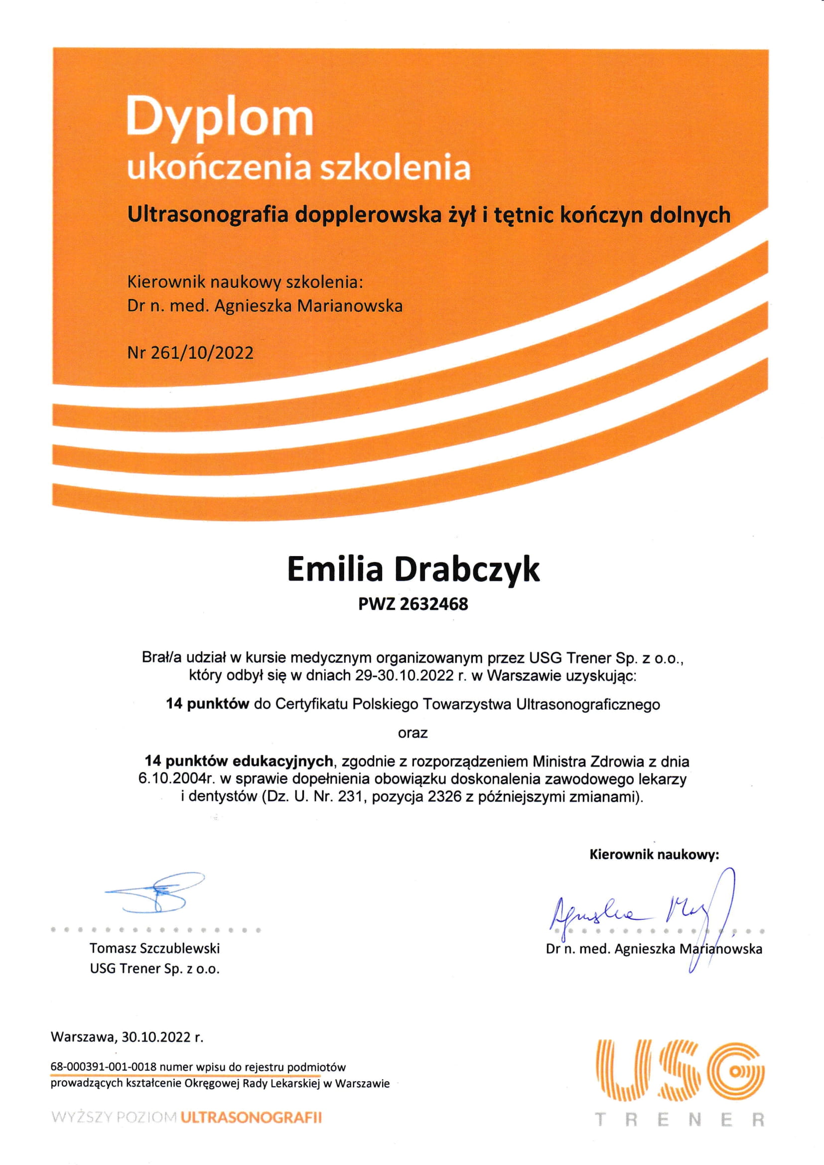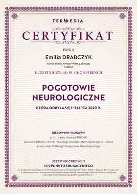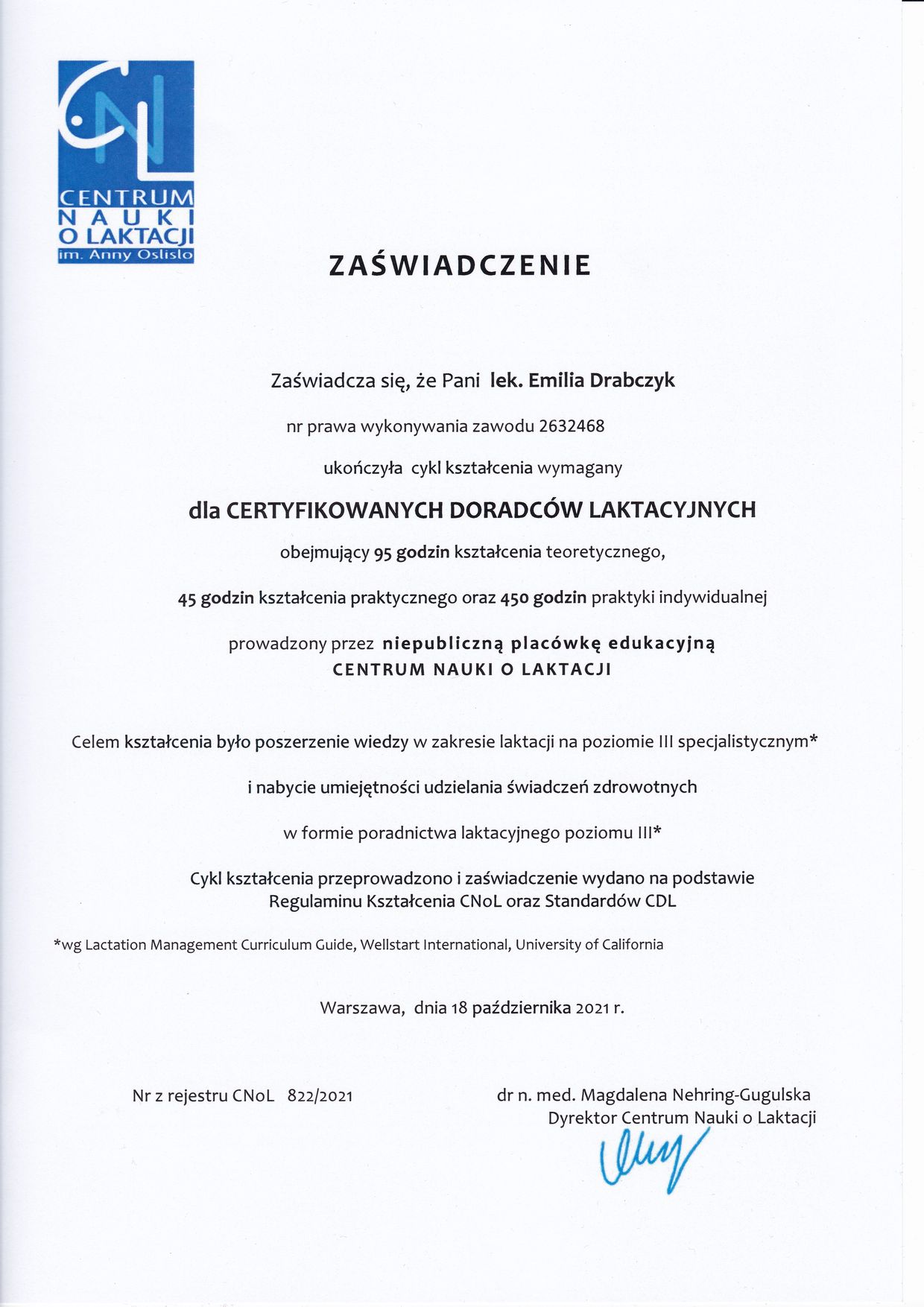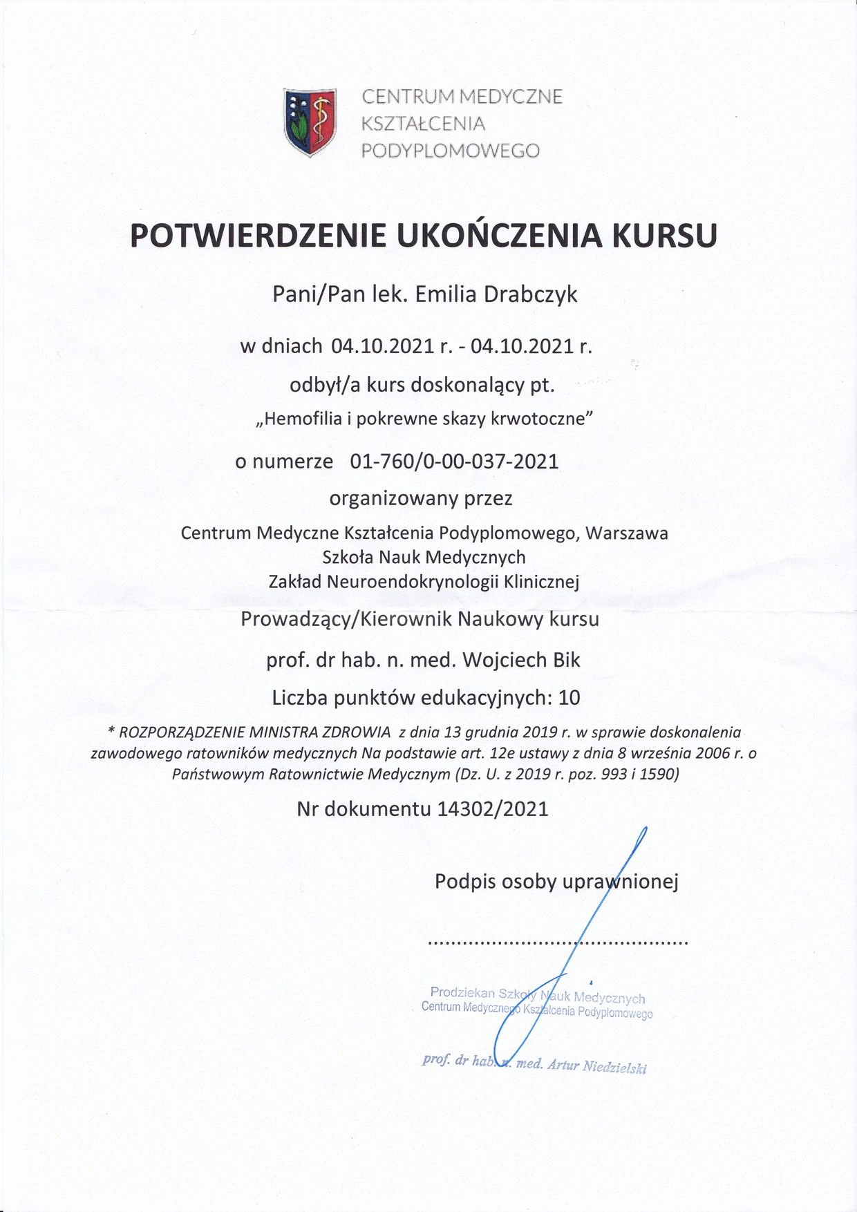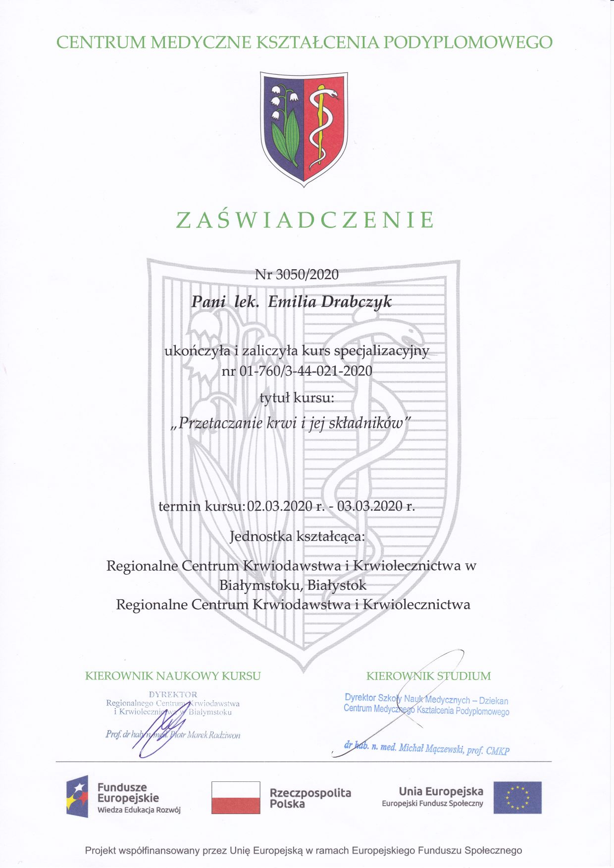 Medycyna uczy pokory, dlatego regularnie podnoszę swoje kwalifikacje uczestnicząc w wykładach, kursach, konferencjach i szkoleniach. Aby zapewnić najwyższe bezpieczeństwo swoim pacjentom oraz leczenie na wysokim poziomie, cały czas podnoszę swoje kompetencje i umiejętności zawodowe, często wykraczając poza ramy medycyny rodzinnej. Poniżej znajduje się galeria z certyfikatami z niektórych kursów.