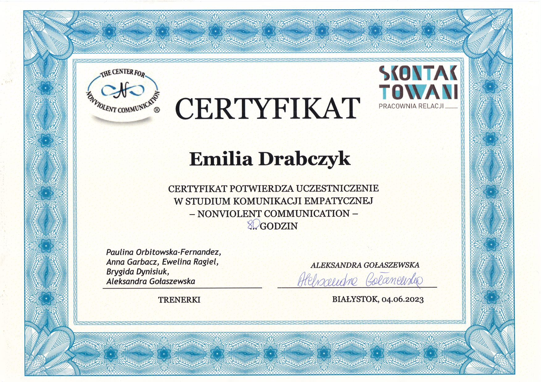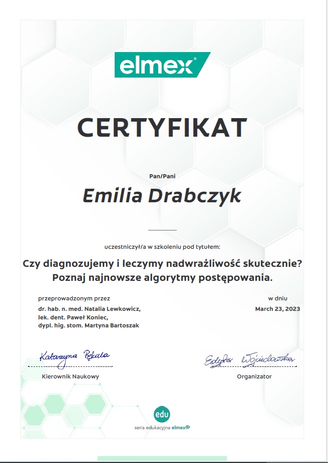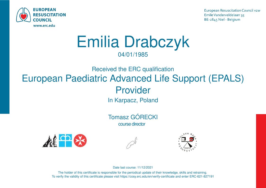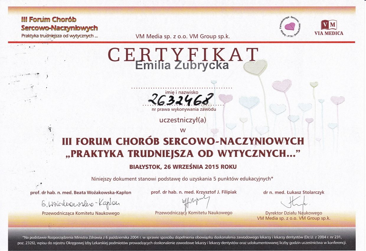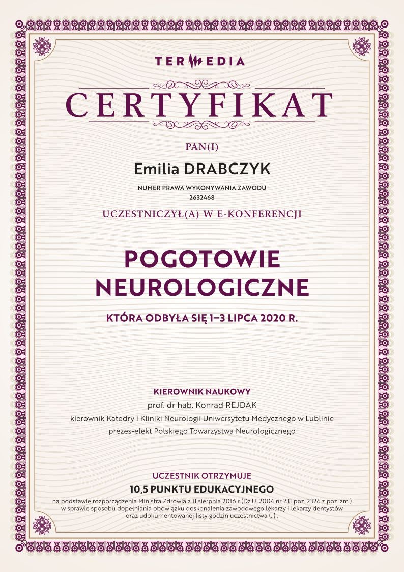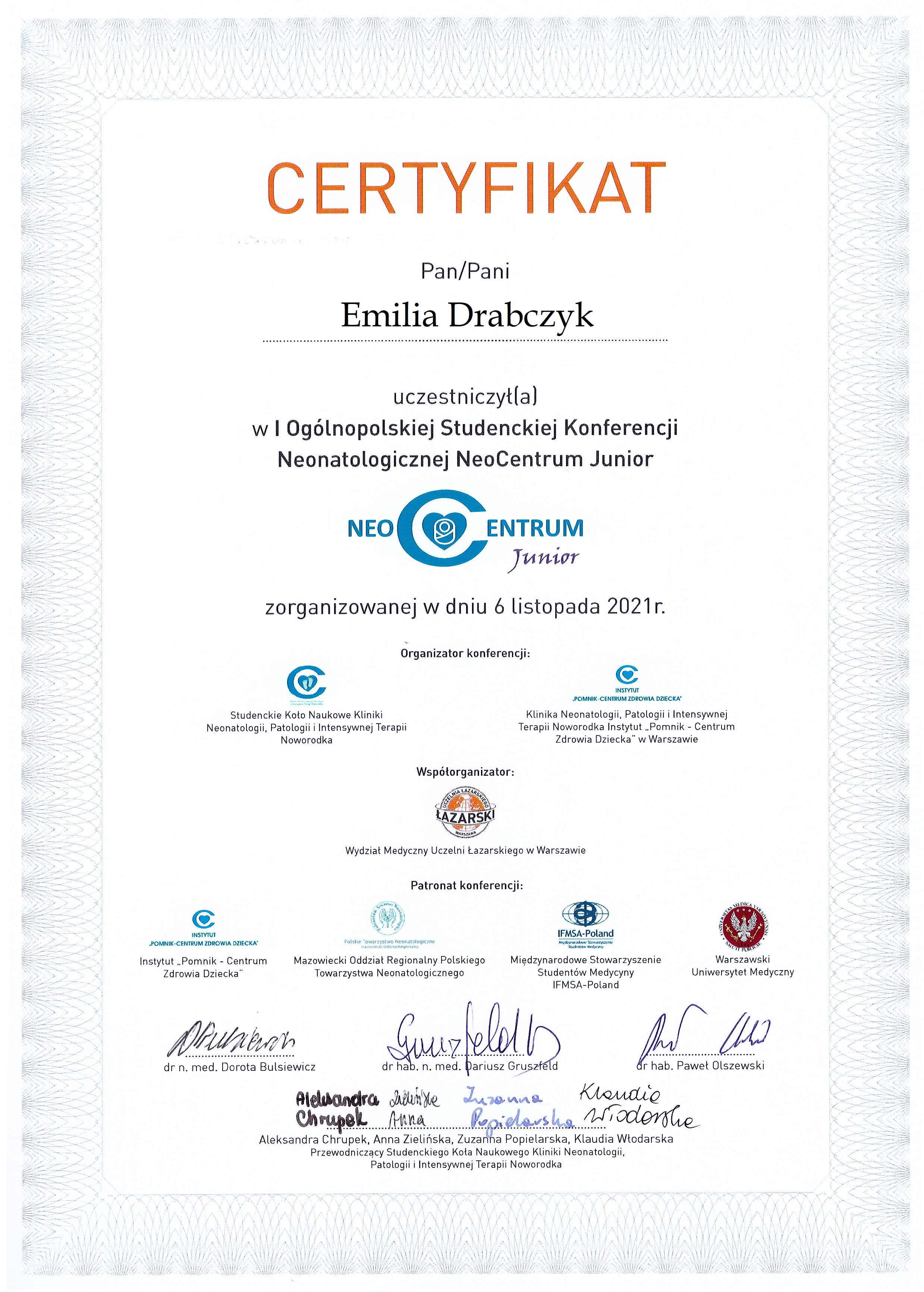 Medycyna uczy pokory, dlatego regularnie podnoszę swoje kwalifikacje uczestnicząc w wykładach, kursach, konferencjach i szkoleniach. Aby zapewnić najwyższe bezpieczeństwo swoim pacjentom oraz leczenie na wysokim poziomie, cały czas podnoszę swoje kompetencje i umiejętności zawodowe, często wykraczając poza ramy medycyny rodzinnej. Poniżej znajduje się galeria z certyfikatami z niektórych kursów.